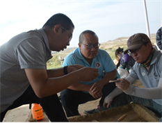 2021年9月25日,国家文物局举办的“首届旧石器时代考古高级研修班”在宁夏水洞沟考古遗址顺利结业。研究班于2021年6月开班,在为期三个月的培训中,我校民社院考古文博系副教授彭菲受邀成为培训班的指导教师,全程参与指导,并带领我校数名本科及研究生参与了2021年宁夏水洞沟遗址考古发掘实习。彭菲老师为培训班学员和发掘人员做了题为《水洞沟遗址发掘2014-2020》、《水洞沟发掘方法与技术》、《石制品组合分析》、《IUP与中国北方石叶技术》、《旧石器时代石制品观测与制图》等多个报告,并在野外工作中承担指导学员和实习学生的任务。